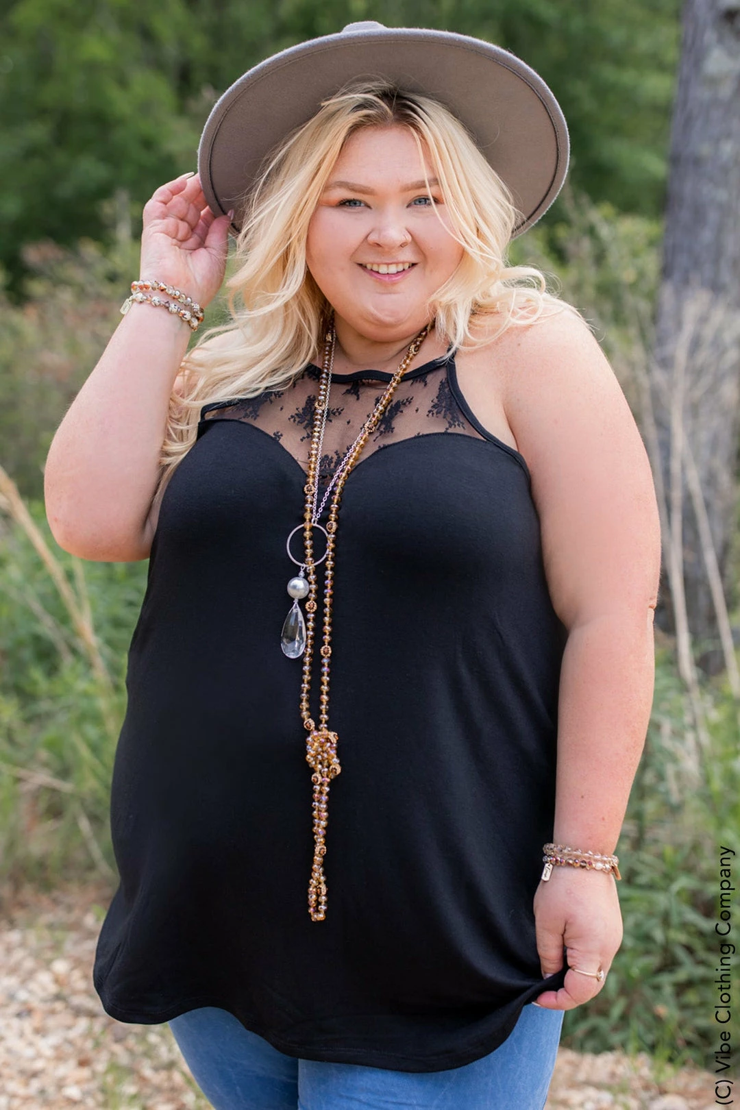 This cute swing style tank has a figure-flattering loose fit. It’s a soft, stretchy fabric to keep you cool and comfortable. We love the lace detailing at the neckline! This Tank is perfect to pair with everything in your wardrobe! This tank has a swing style, so it won’t cling or fit tight.