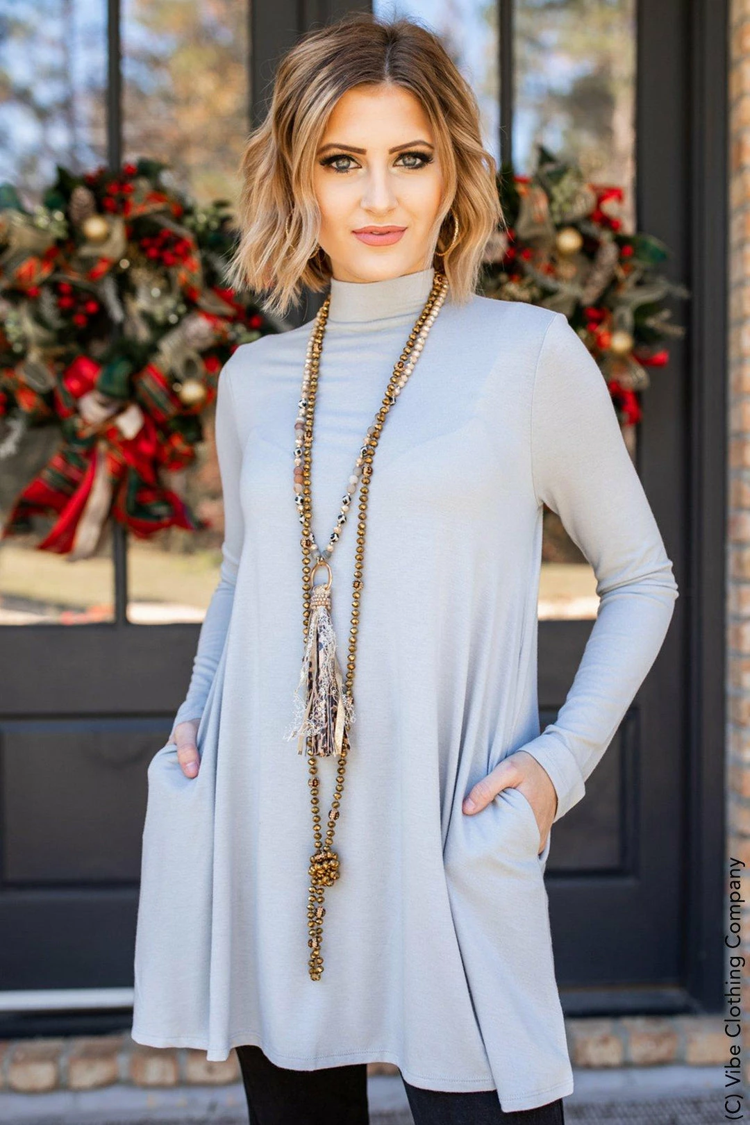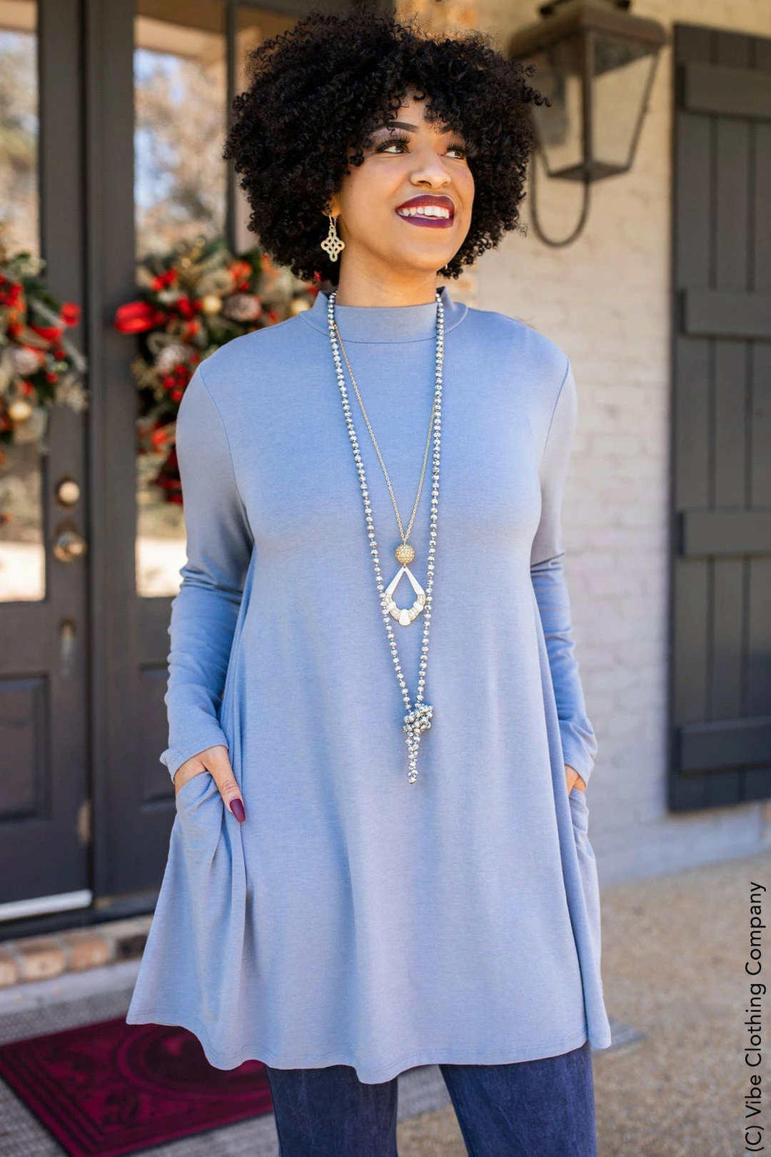 You will want to get this mock turtleneck tunic as quickly as you can! The super-soft fabric is a dream to wear and so is the silhouette! The long sleeves are perfect for this chilly season, along with the longer tunic length of the top. And, it has side pockets!