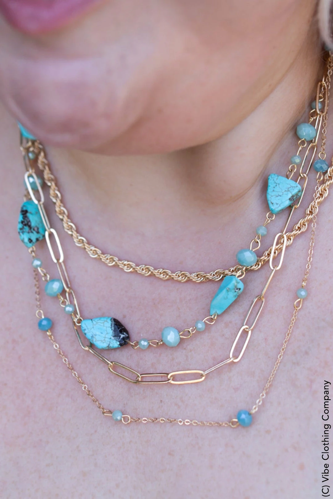 This layered statement necklace is the perfect choice for your day or nights! You can’t go wrong with the turquoise nugget necklace with the gold color accents! It is so beautiful and delicate!