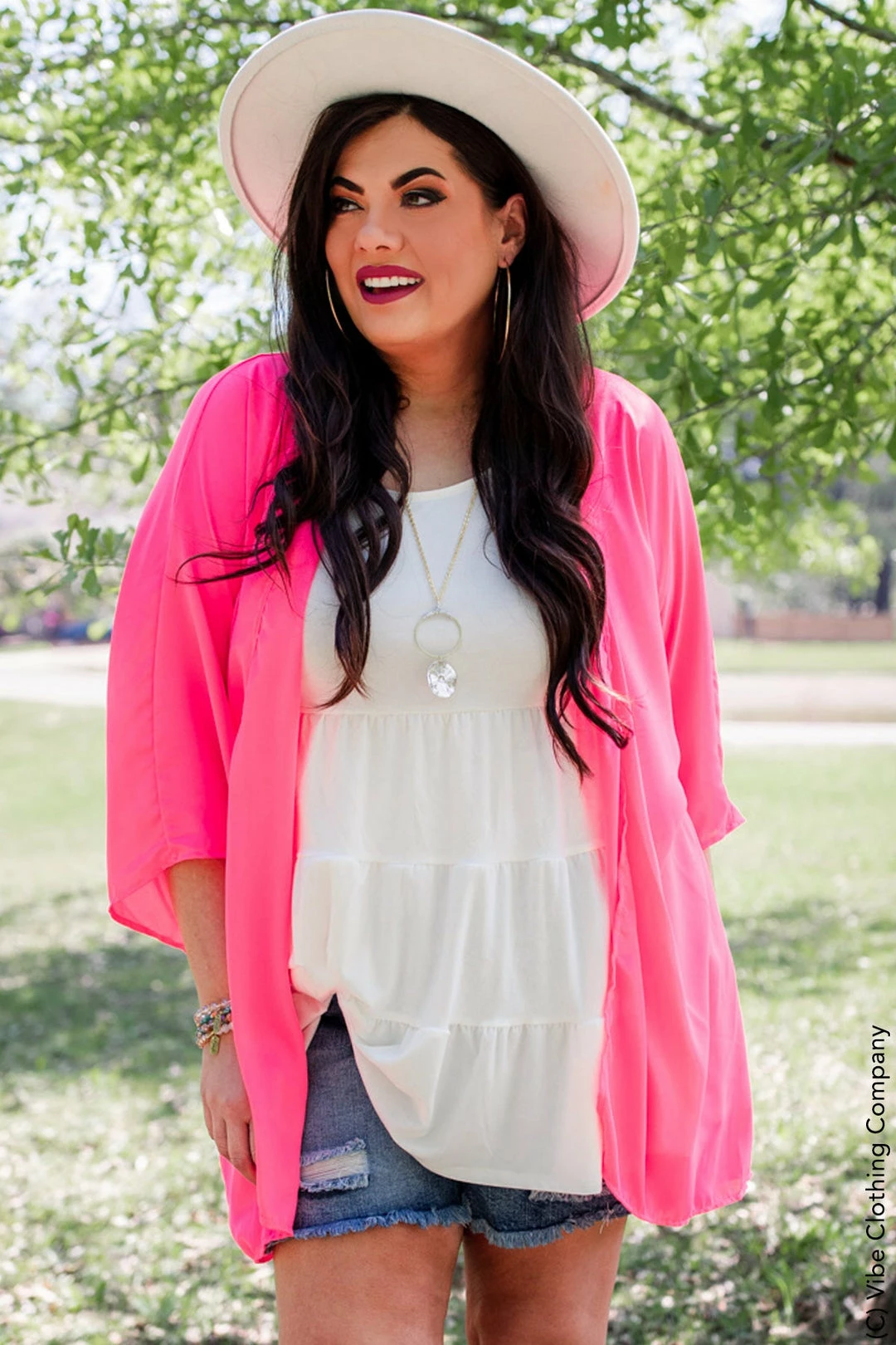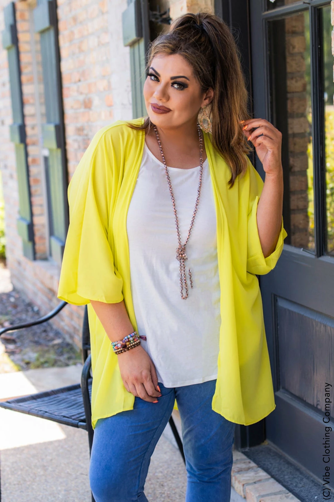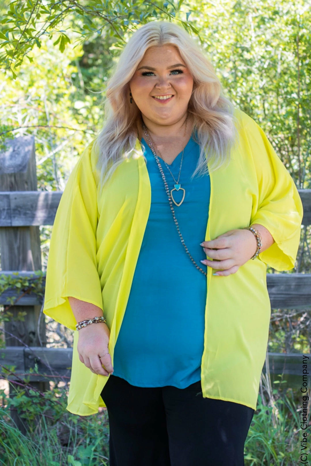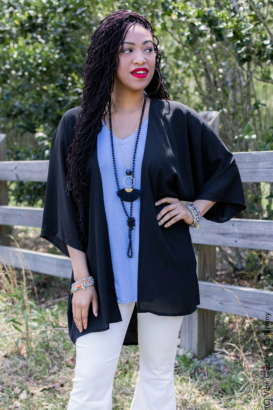 These are Kimonos that you’ll say “Yes, Please!” to in EVERY color! You can wear it for every occasion! It’s comfortable for all day wear and has an oversized fit! Pair this kimono with a solid top or dress for an easy everyday look.
