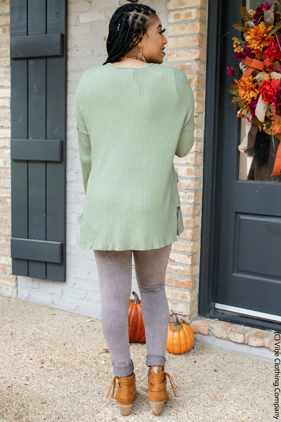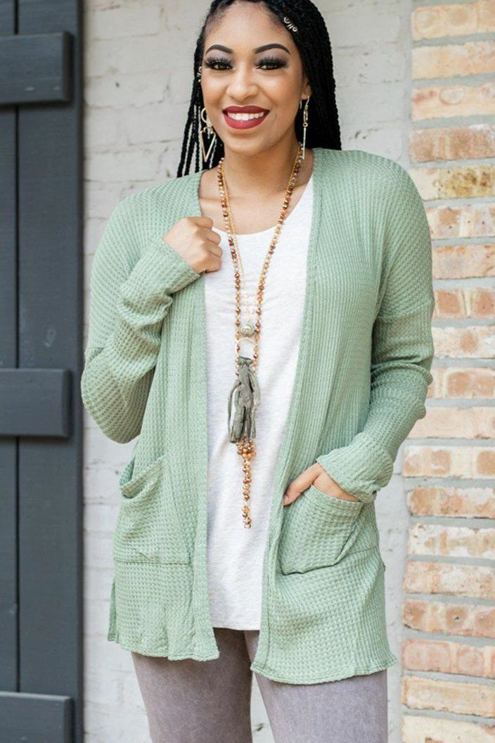 Wanderlust is a strong desire to wander or travel and explore. This new cardigan is going to be a Vibe Tribe Favorite! Collect the Wanderlust Cardigans in EVERY color for your Fall wardrobe! It’s comfortable for all day wear, has a figure-flattering fit, pockets and feature a super light weight & stretchy waffle fabric! Simply, style this cardigan with a solid top or basic dress for a great VIBE Tribe look! Â