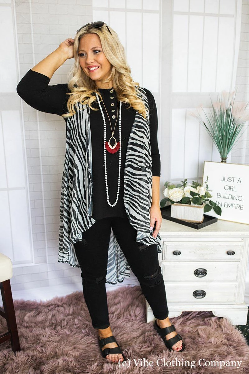 Everyone LOVES our high/low vests, and this new black and white print is sure to be a Vibe Tribe favorite!