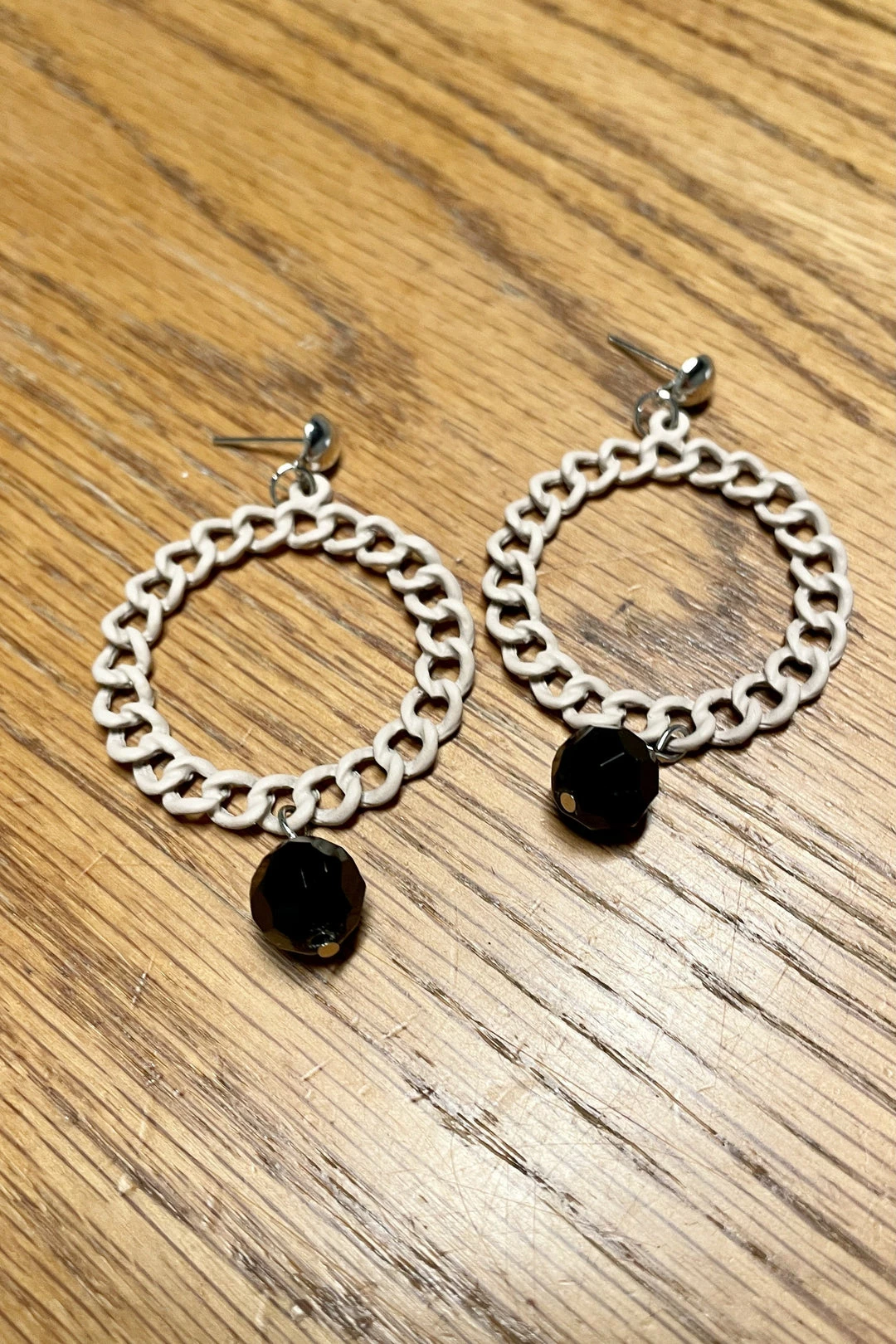 These wonderful statement earrings are the perfect choice for your days & nights! You can’t go wrong with the classic chain metal coated in grey! From little black dresses to tanks and jeans, you’re sure to love these earrings all year long!