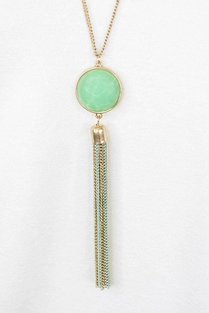 This stunning gold and blue tassel necklace is the perfect way to add a little color to any outfit!