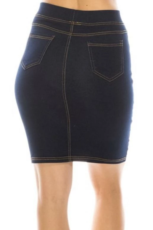Introducing…Caspian The skirt! You can forget buttons or zippers! High waisted with a stretch waist band and stretchy denim fabric! So comfy! A fabulous and classy length hem with working pockets. Wash may vary slightly.