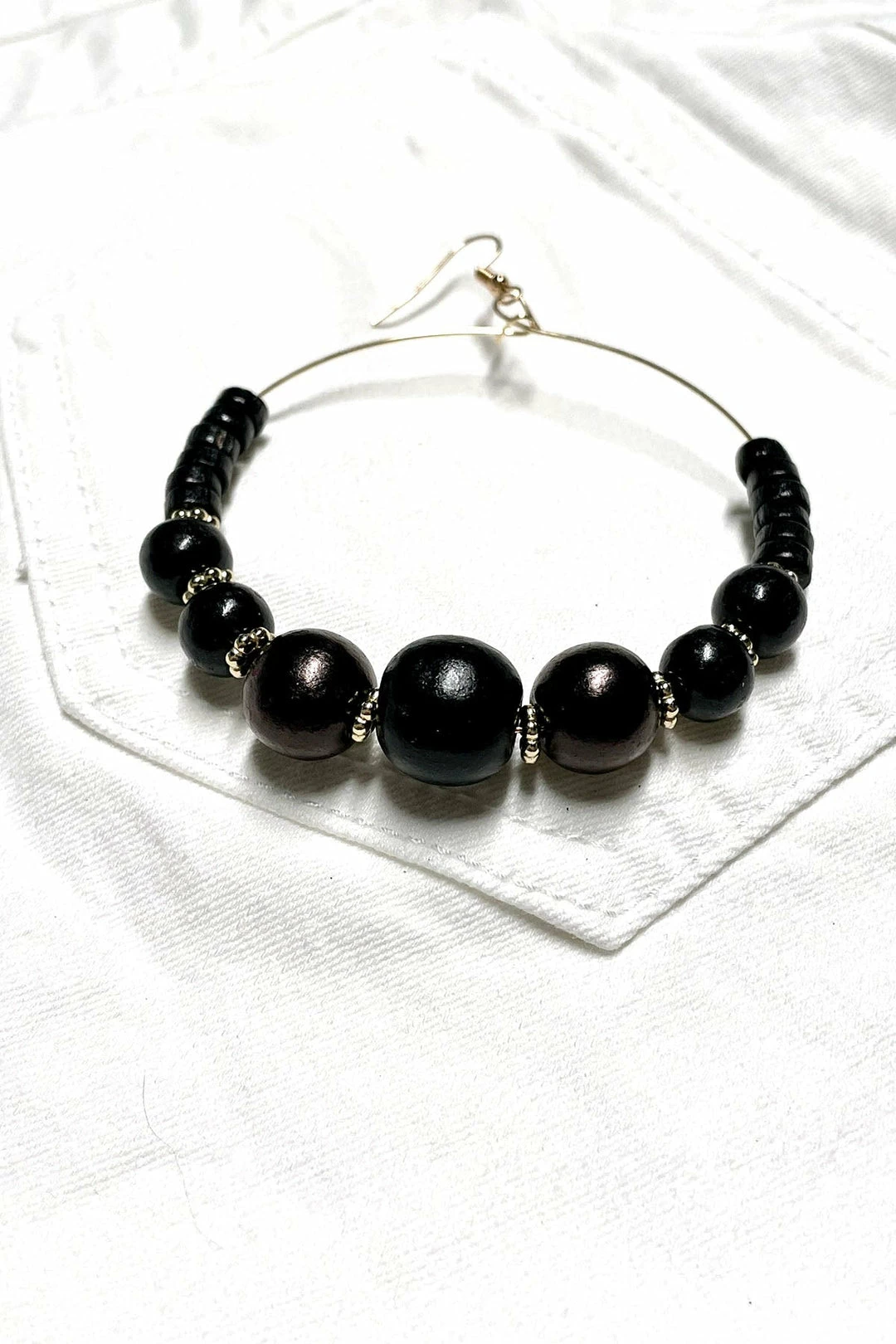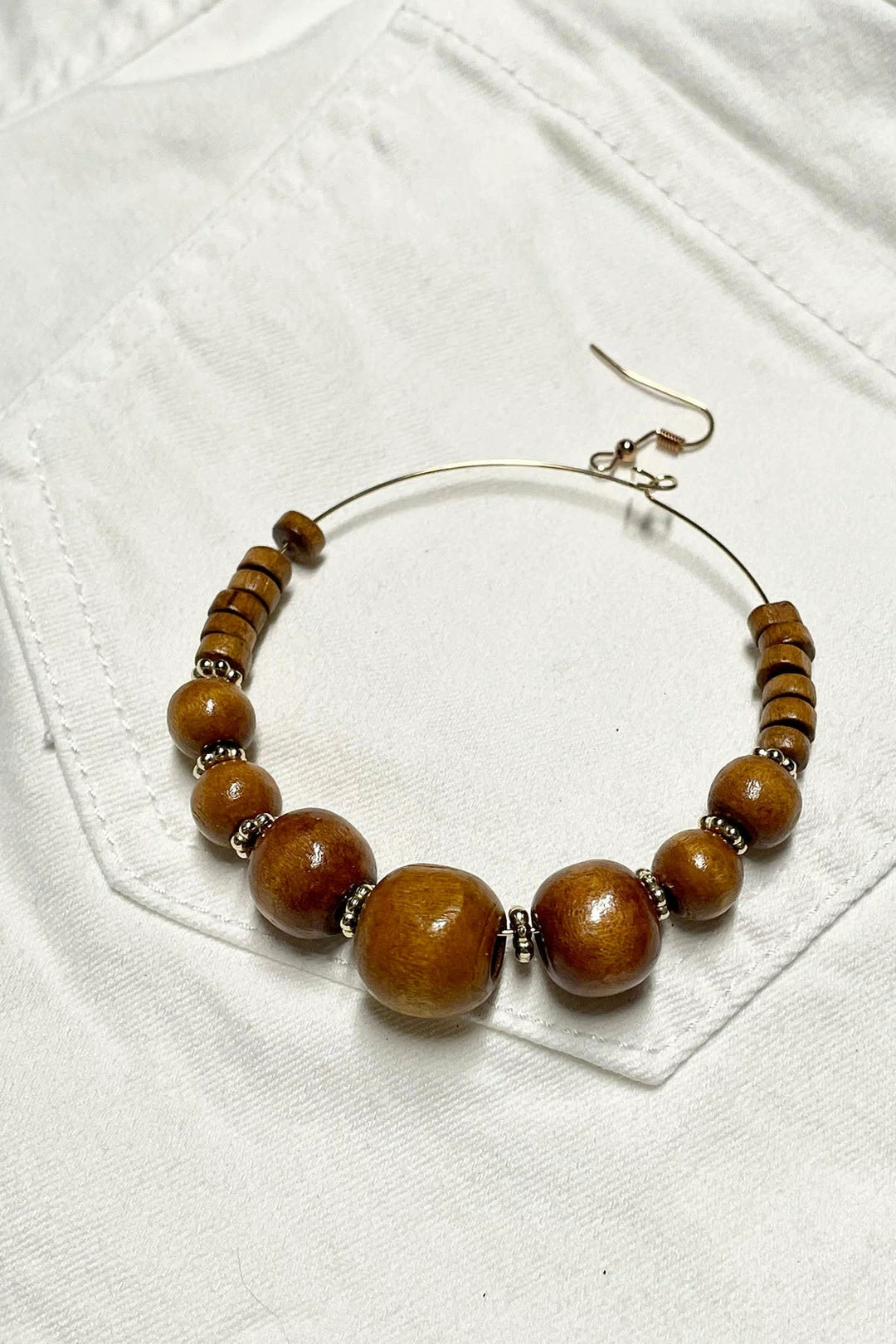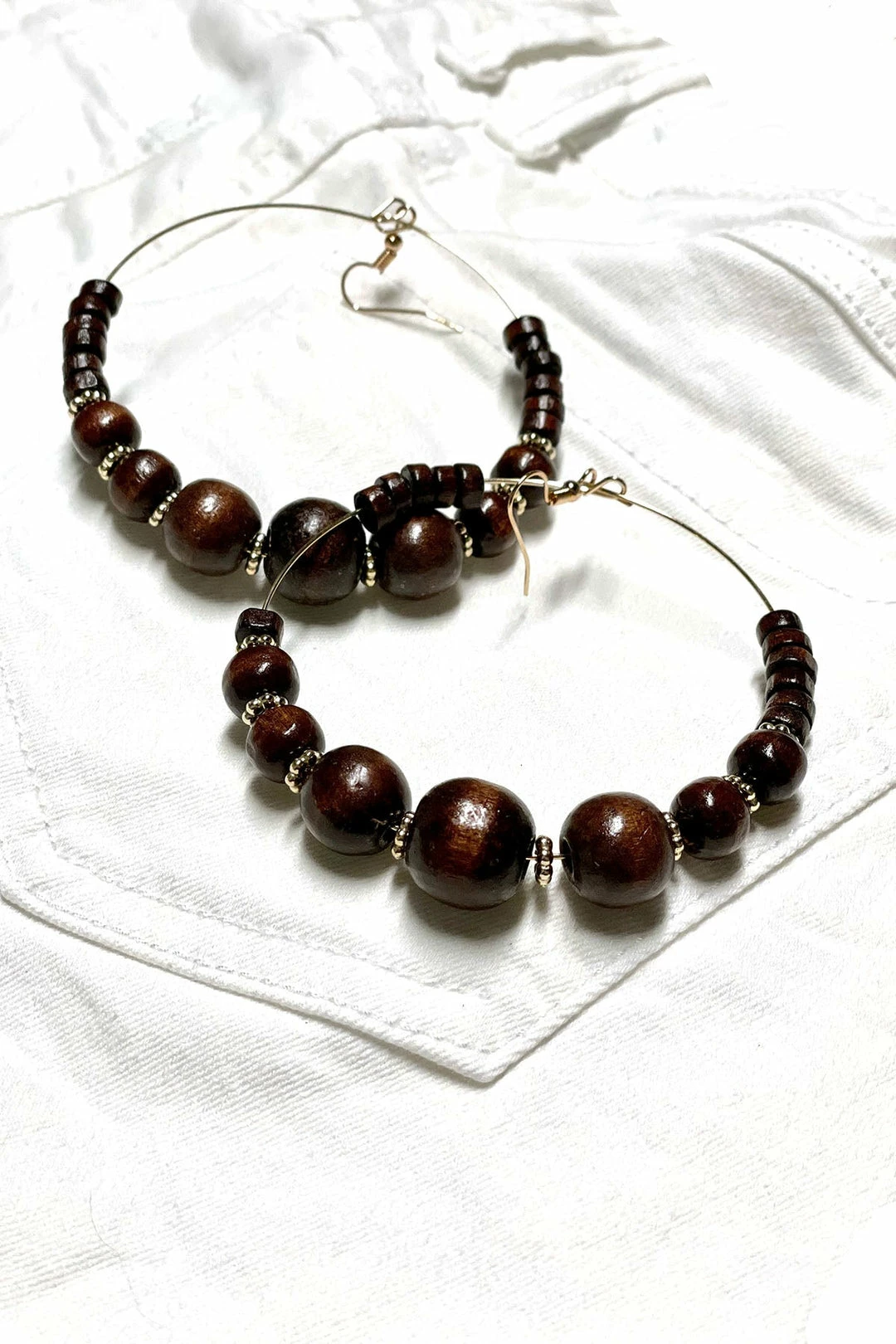 These earrings are the perfect addition to any sassy outfit! These hoops feature natural wooden beads in a variety of neutral color options.