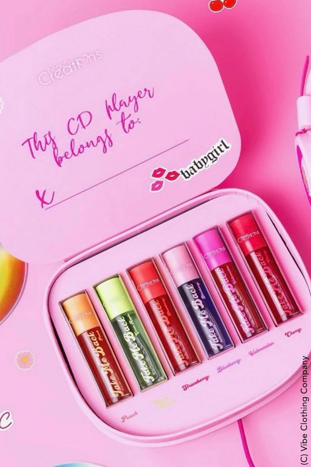 Take me back to the 1990s with this precious roller gloss set! It comes with six nostalgic scents in this personalized CD case! Perfect for yourself or for a gift!