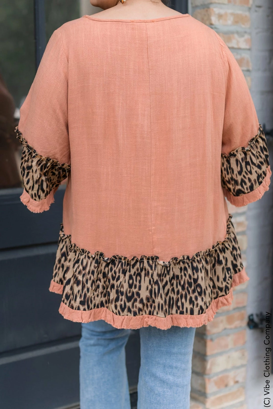 The Desert Leopard top is a BEAUTIFUL color! The linen blend with a contrasting leopard print trim is gorgeous. The swing fit with fringed hemline is perfect for a breezy day!