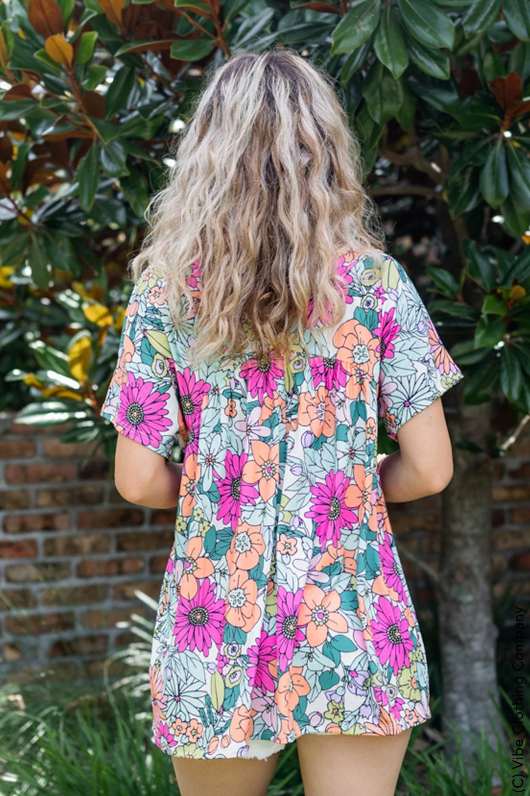 These new top features a beautiful ivory background with a gorgeous Tropical flower print of vibrant colors. The empire waist line is very flattering and we love the uniqueness of this new item!Â