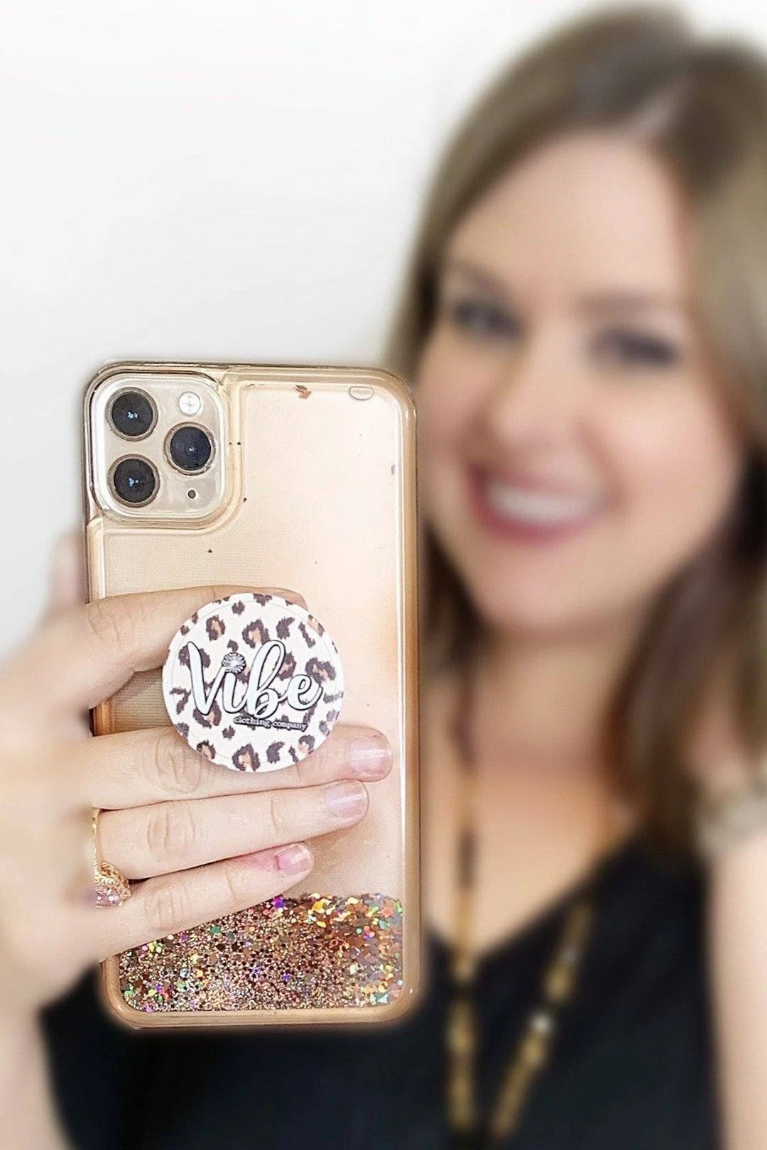 Use our PopStand to help you hold your device! The phone grip and stand sticks to phones, tablets and cases, and can be collapsible for your comfort. Never drop your phone, prop up your phone and take better selfies with it! Features our logo design of signature leopard print. 3M superior adhesive. Too cute!