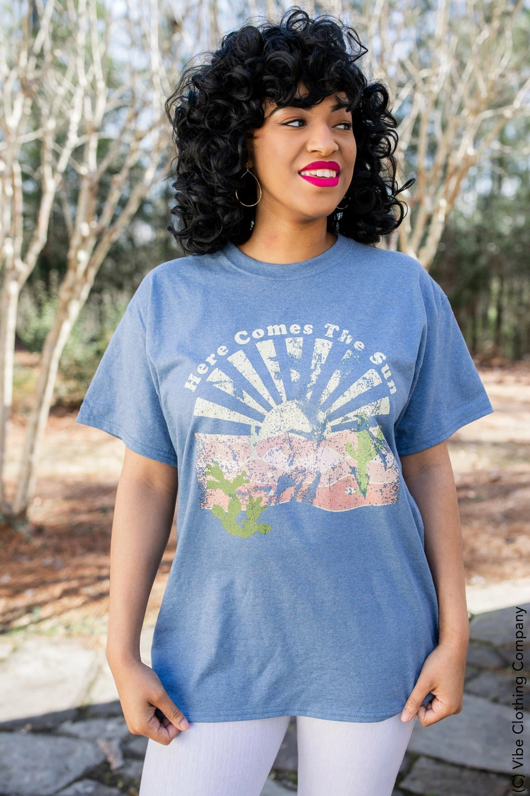 Here comes the sun;Â And I say it’s all right (to add this tee to your spring wardrobe).