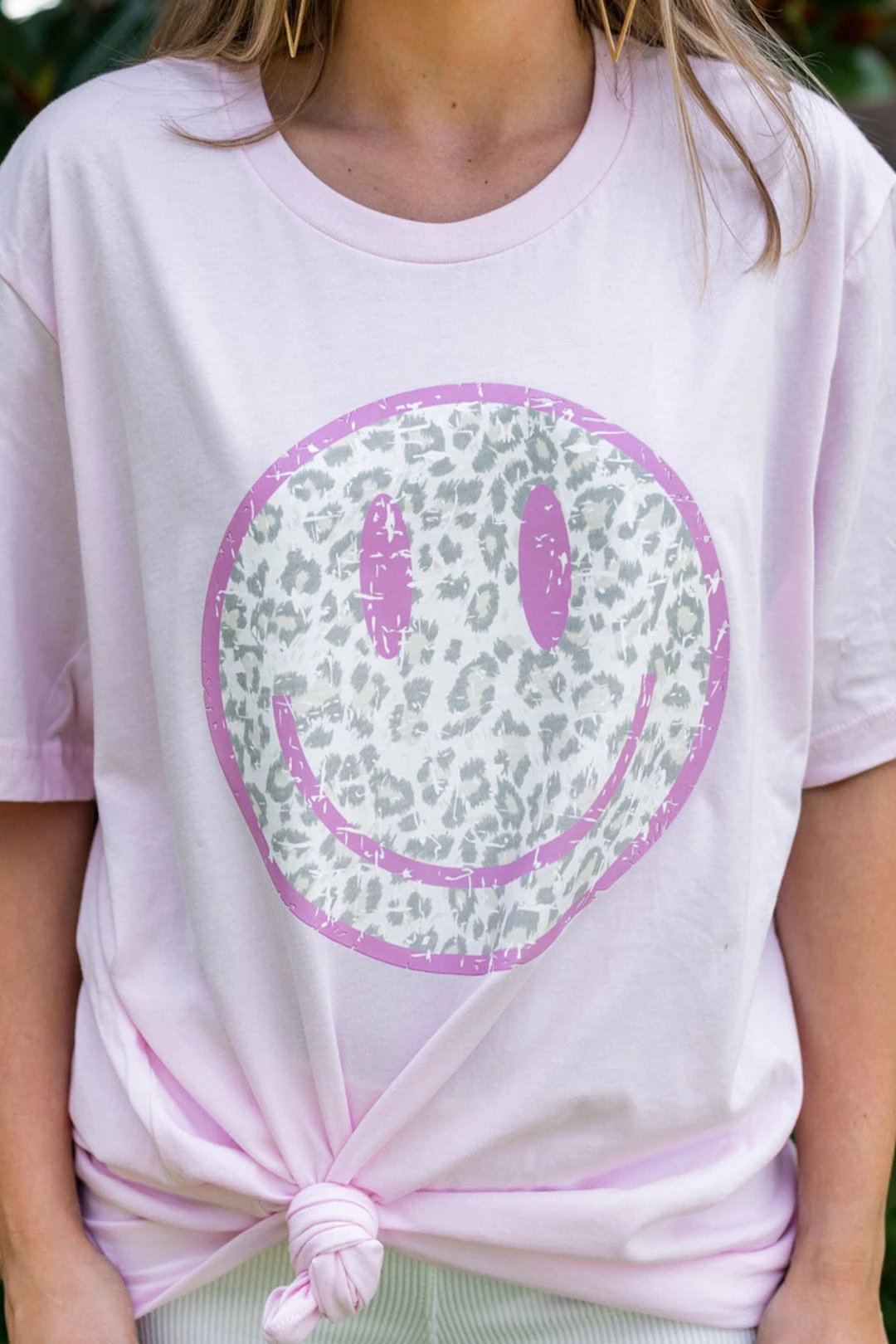 This is the best 70’s & 90’s inspired smiley face graphic tee. We love the soft pink with the vintage look of the print. Wear your favorite leggings or add jeans to complete this look.