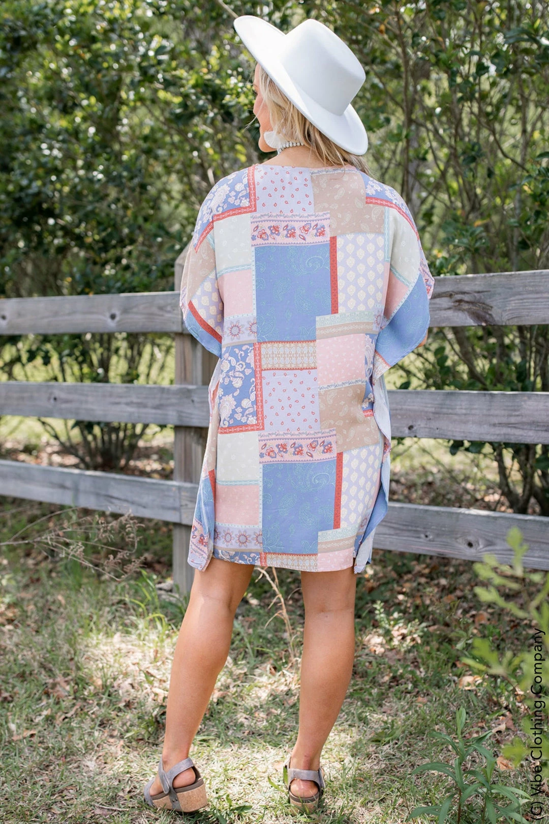 This new poncho dress has a vintage flair. We love how the fabric is light weight and flowy. The poncho style fit is flattering on and the colors in this beauty make it so easy to pair with tons of options! Wear it as a dress or a tunic with capri leggings.