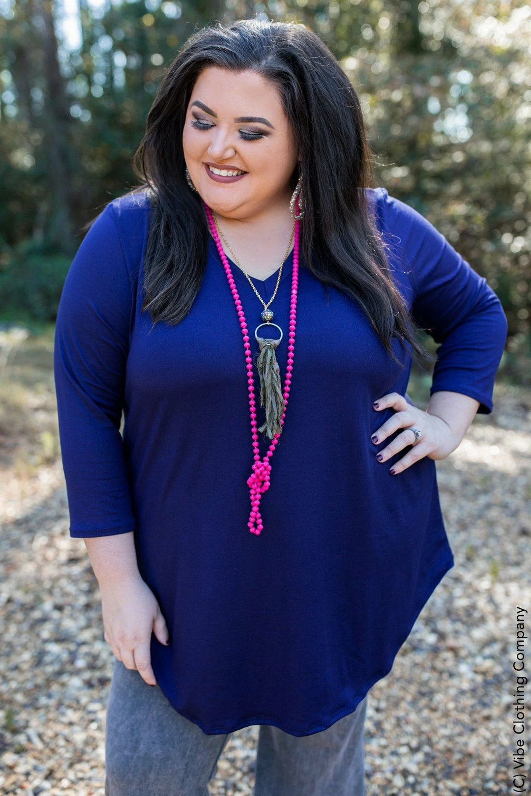What a deal on an important survival item to your wardrobe! Everyone needs solid layering tops…You “Gotta Get That”! Soft like butter with a slight V neck, scoop sides and 3/4 sleeves.