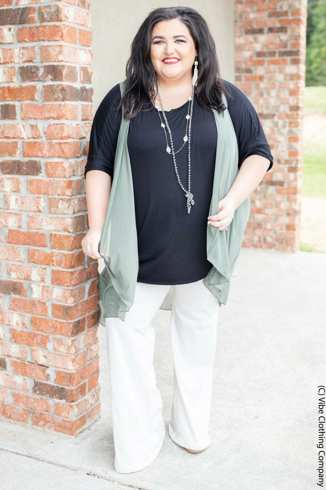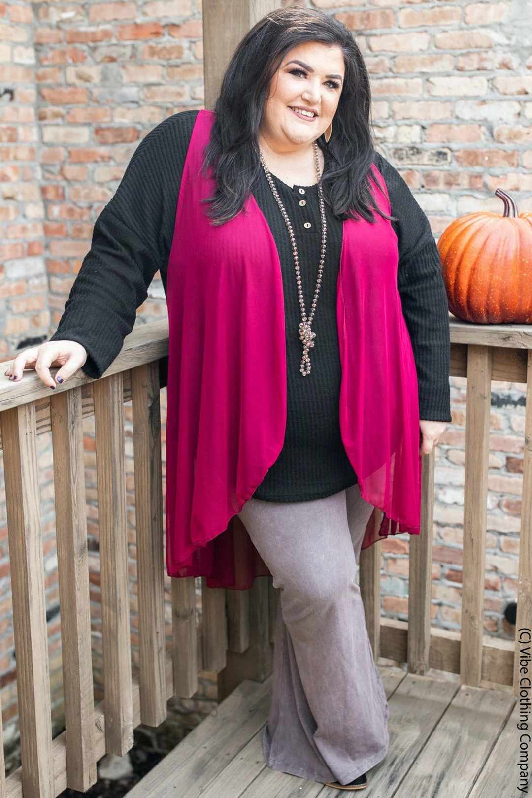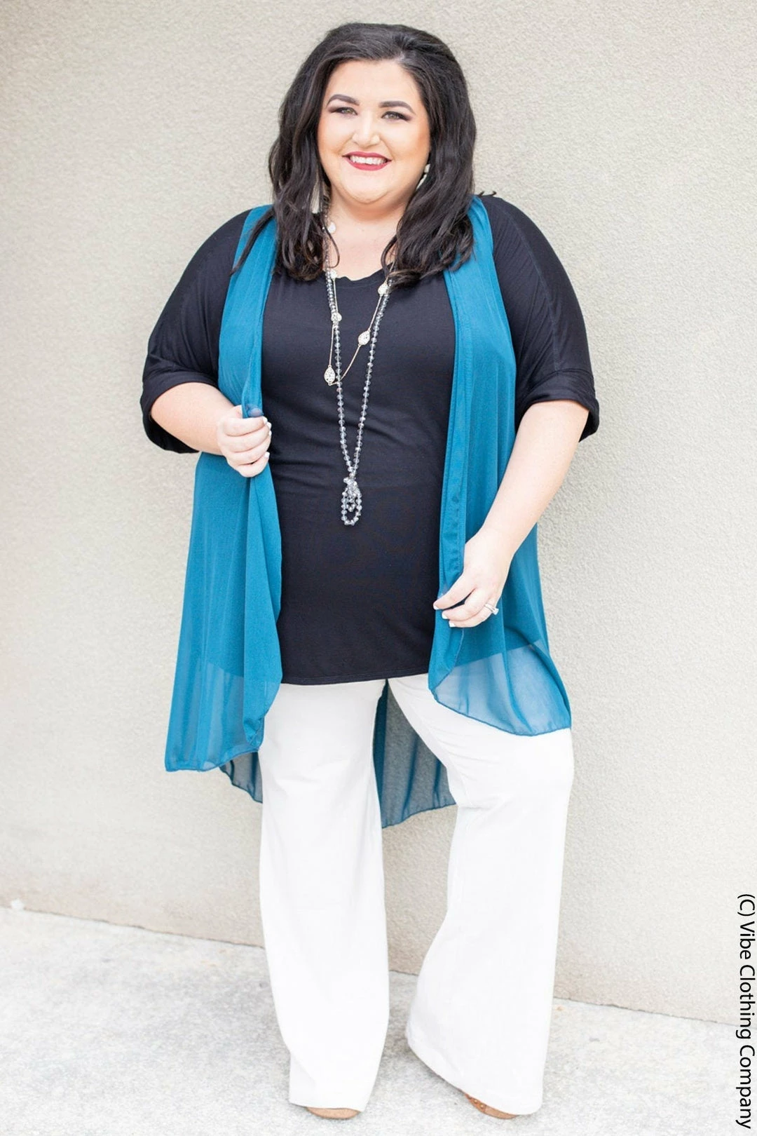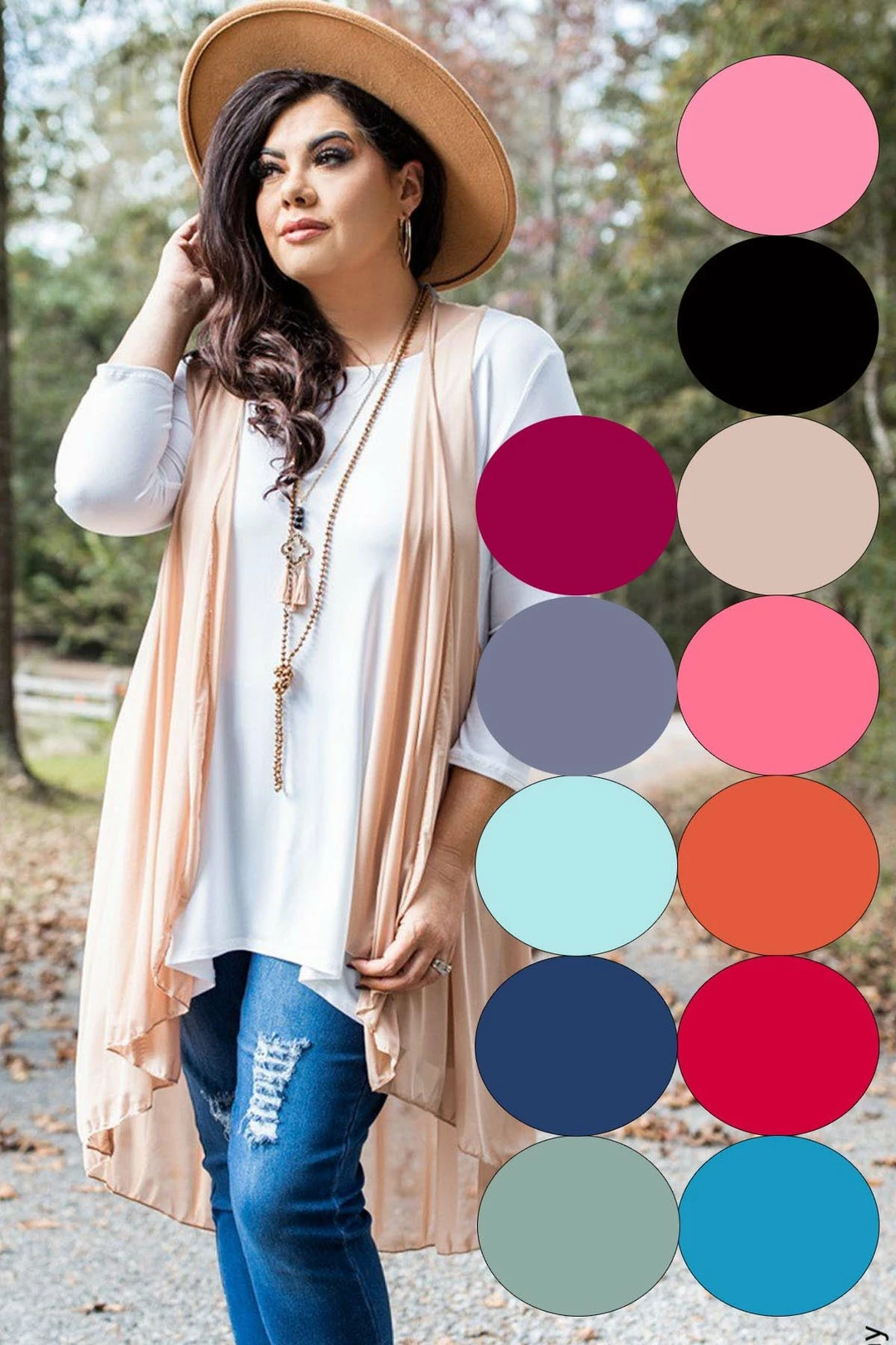 From the masterminds of the style Divas at Vibe, comes the original Vibe Vest! Lightweight and stretchy, this high low vest stands the test of time! It will literally fit over any sleeve and can be worn by sizes 0-32.